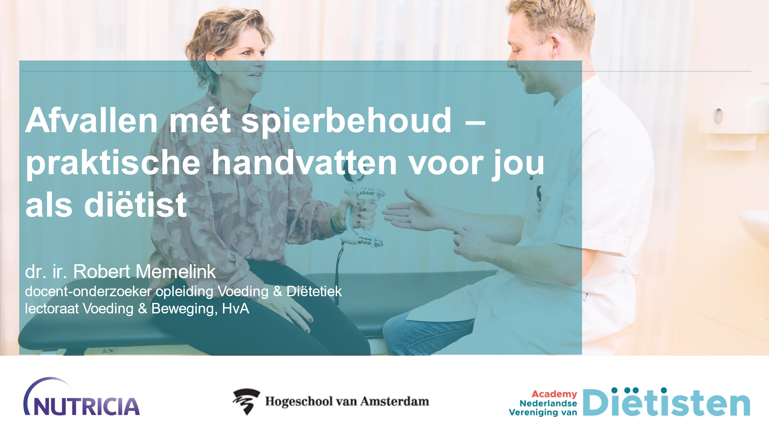 Op dinsdag 24 november gaf Robert Memelink, op uitnodiging van de Nederlandse Vereniging van Diëtisten (NVD) en Nutricia, een webinar over spierbehoud tijdens gewichtsverlies. Ruim 80 diëtisten uit de eerste, tweede en derdelijnszorg volgden de sessie, waarin zij werden bijgepraat over de rol van bewegen, voldoende eiwitinname en effectieve leefstijlbegeleiding bij het behouden van spiermassa en -functie tijdens afvallen.